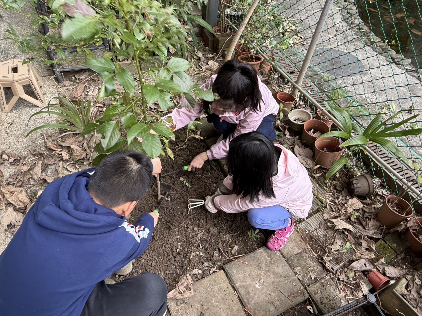 學校環境鄰近河濱公園,附近的生態真的很完整。很容易就可以看到台灣藍鵲、白鷺鷥、環頸斑鳩、白頭翁等鳥類。因為我們有一個生態池,裡面有非常多蝌蚪、昆蟲可以吃,也吸引了這些鳥類以此為家,在這邊生活。
