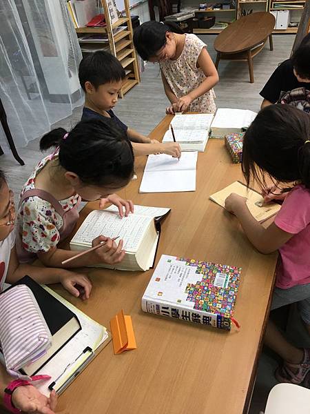 我們可以觀察到,角落裡有的孩子們靜心的操作教具、有的翻查字典、有的彼此互相學習,在活動中互相認識、照顧與扶持。