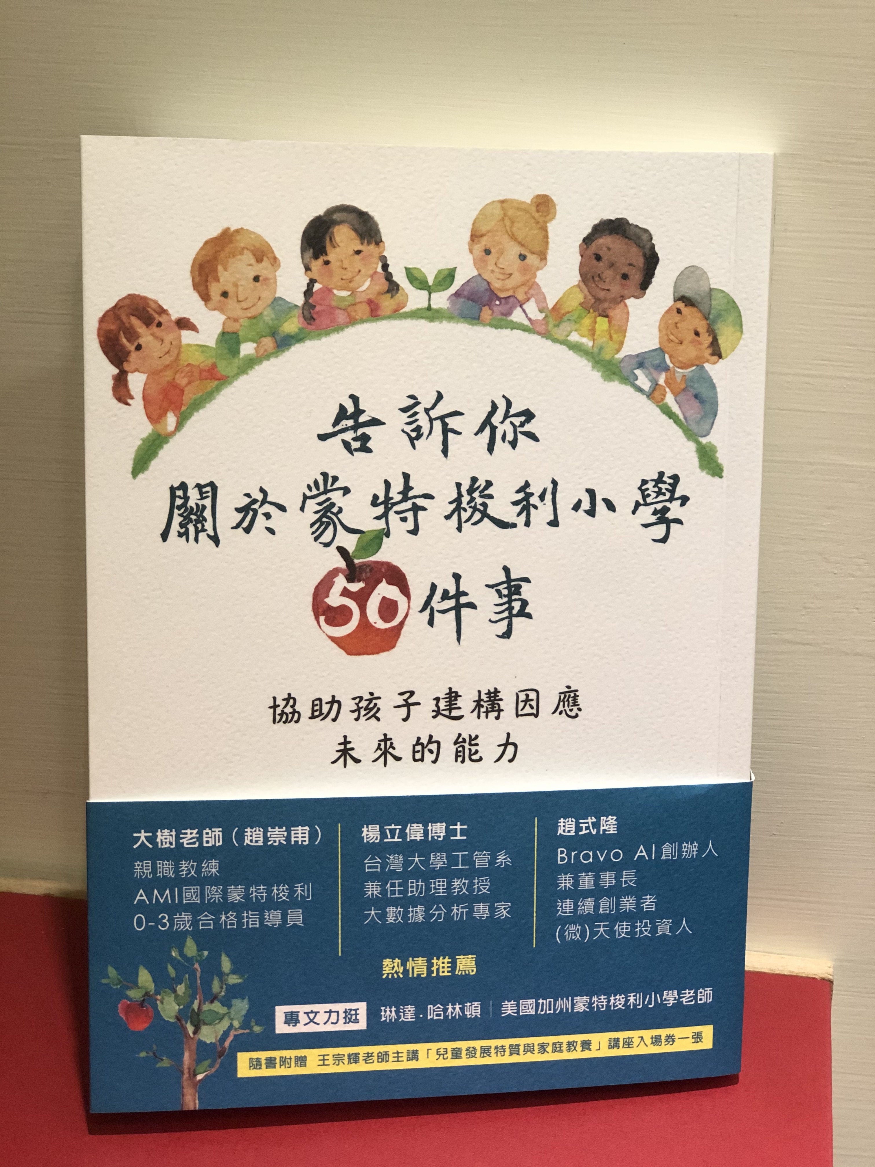 今天剛收到印好《告訴你關於蒙特梭利50件事》,新書出版,還熱騰騰的!首度曝光的書腰,除了三位推薦人外,特別的是,只要購書,就可以得到王宗輝老師「兒童發展特質與家庭教養」講座入場券一張,講座會在五月、七月各舉辦一場。
