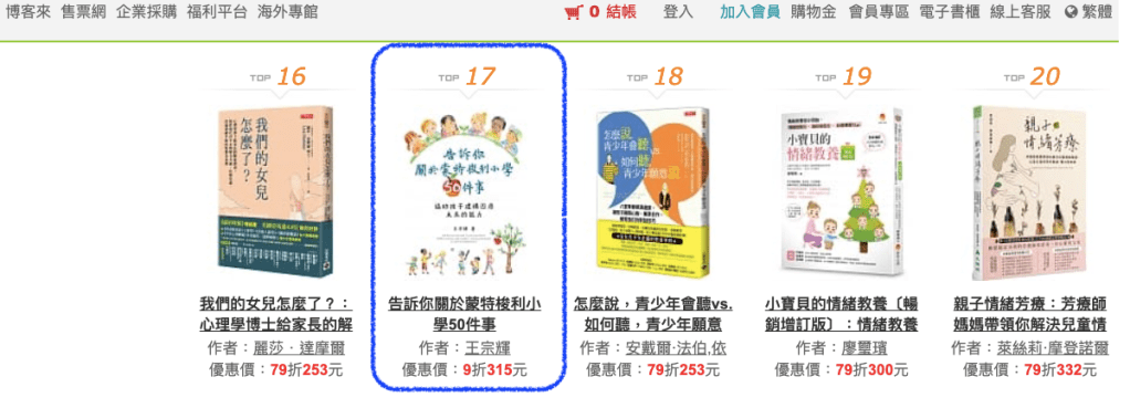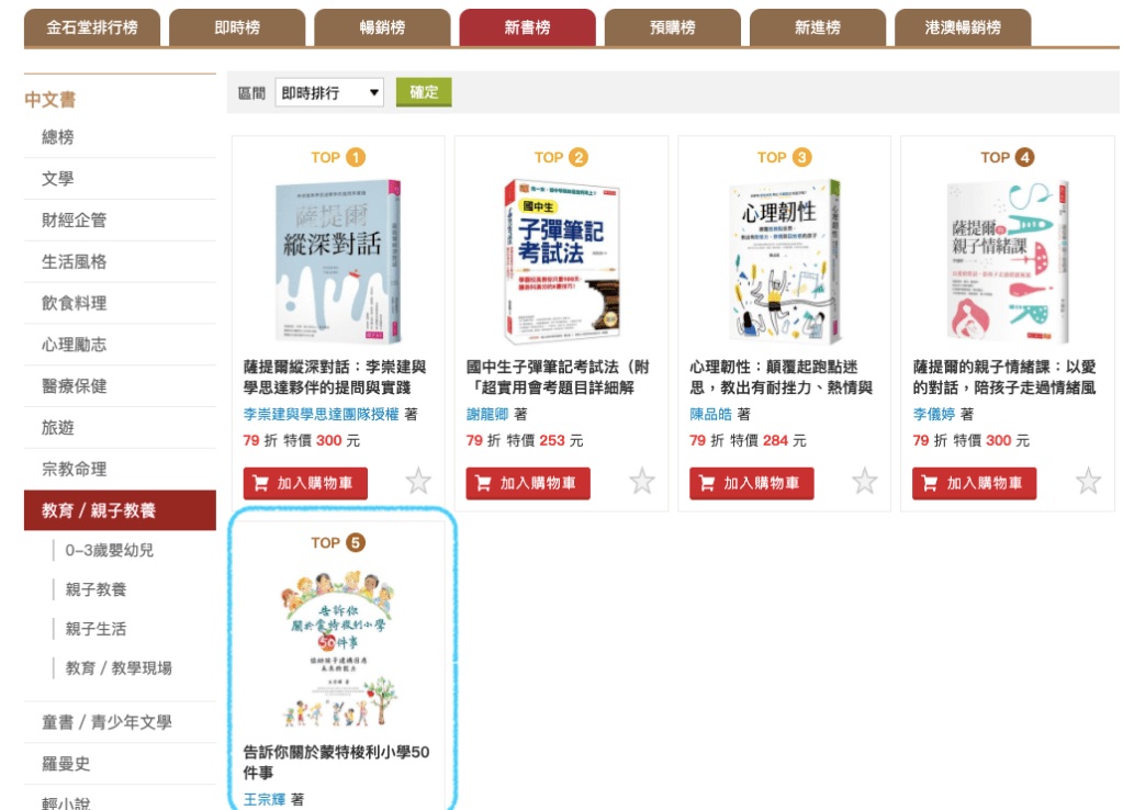 在金石堂教育/親子教養的新書榜為第5。