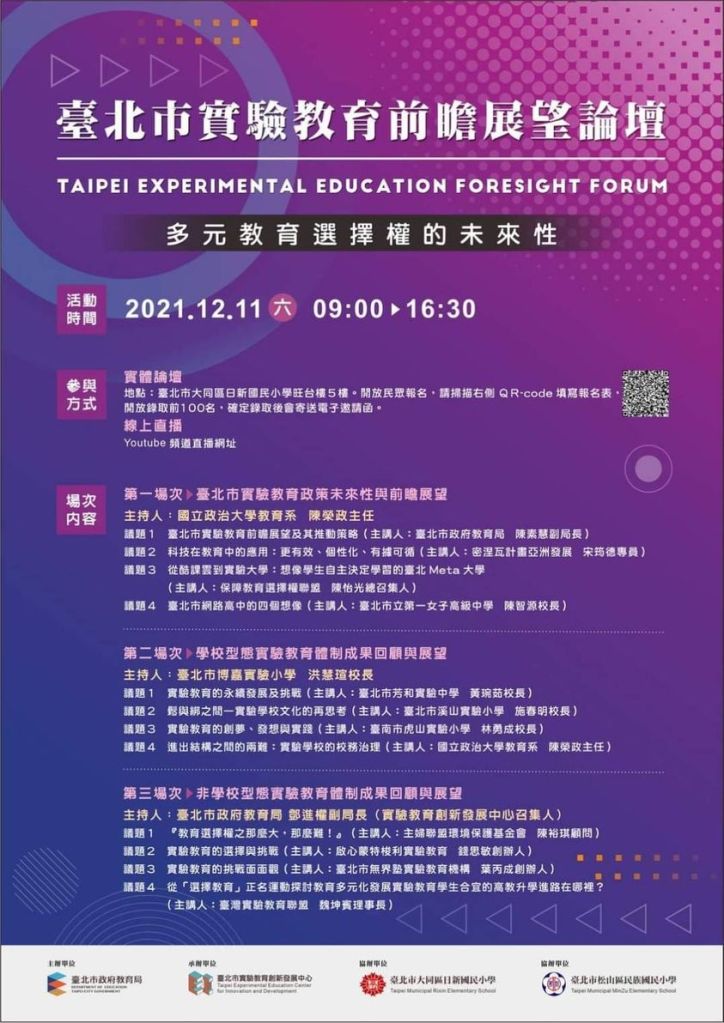很榮幸2021/12/11受到台北市教育局「臺北市實驗教育前瞻展望論壇:多元教育選擇權的未來性」的邀請,針對「實驗教育的選擇與挑戰」為題,進行分享,為了讓更多人了解,將當日論壇分享的內容,藉由文字補充來完整表達,給大家參考。