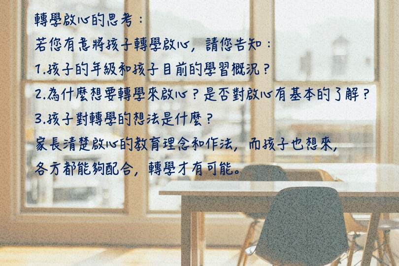 啟心臉書粉專常收到許多家長訊息,來探詢轉學可能性,有些是曾經來過啟心活動的,有些甚至是曾… Continue Reading “轉學啟心的思考"