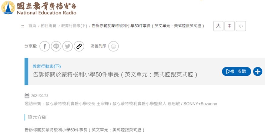 感謝國立教育電台「教育行動家」節目邀請王宗輝老師上電台節目聊聊蒙特梭利小學,歡迎大家點擊… Continue Reading “王宗輝老師在教育電台節目分享蒙特梭利"