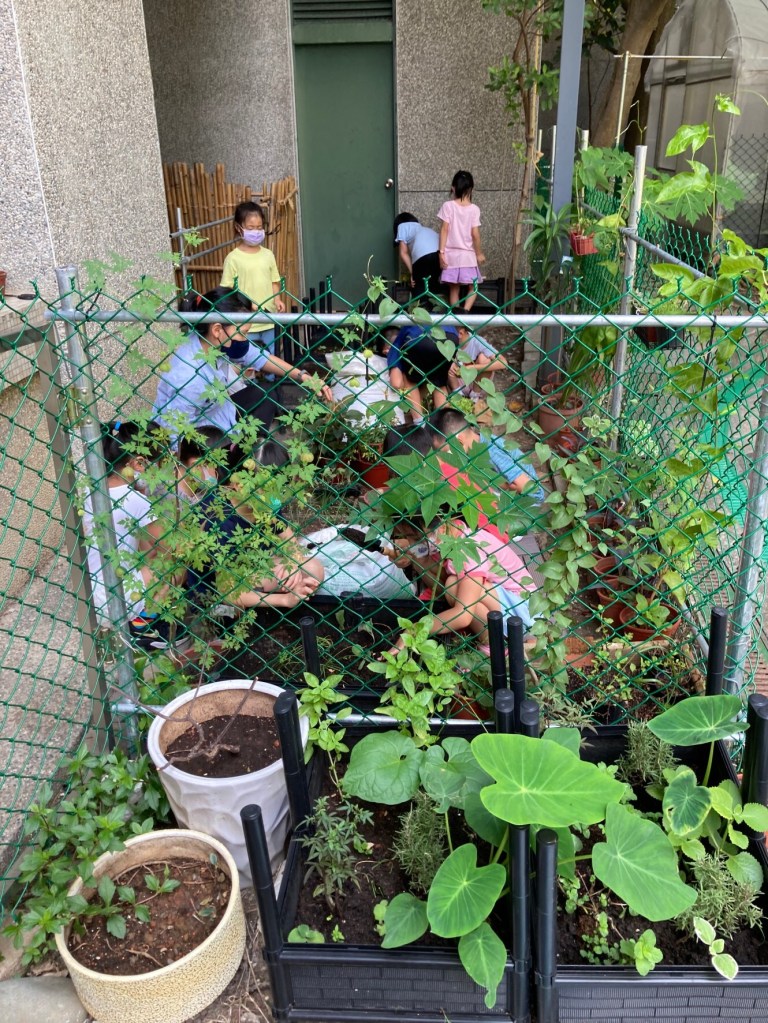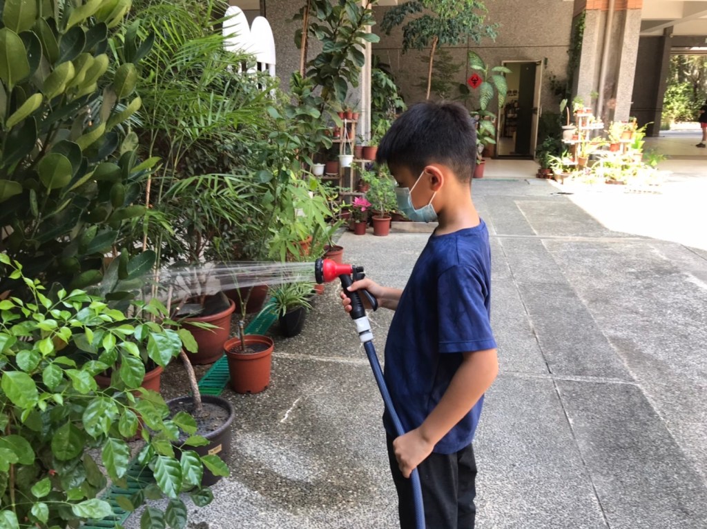 在老師精心安排下,六年級帶領的組員負責生態池周邊,而幾位高年級(五年級)的孩子則個別帶領著自己的組員(一至四年級每組8人),開始校園與社區服務。